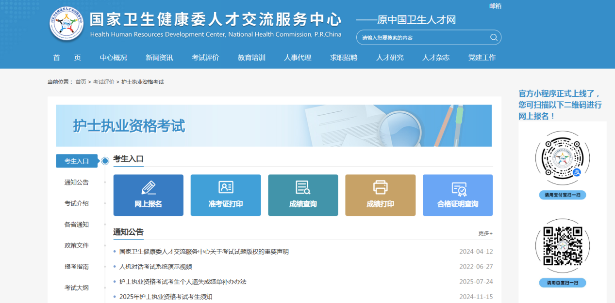 國家衛(wèi)生健康委人才交流服務(wù)中心 > 護(hù)士執(zhí)業(yè)資格考試 > 考試入口